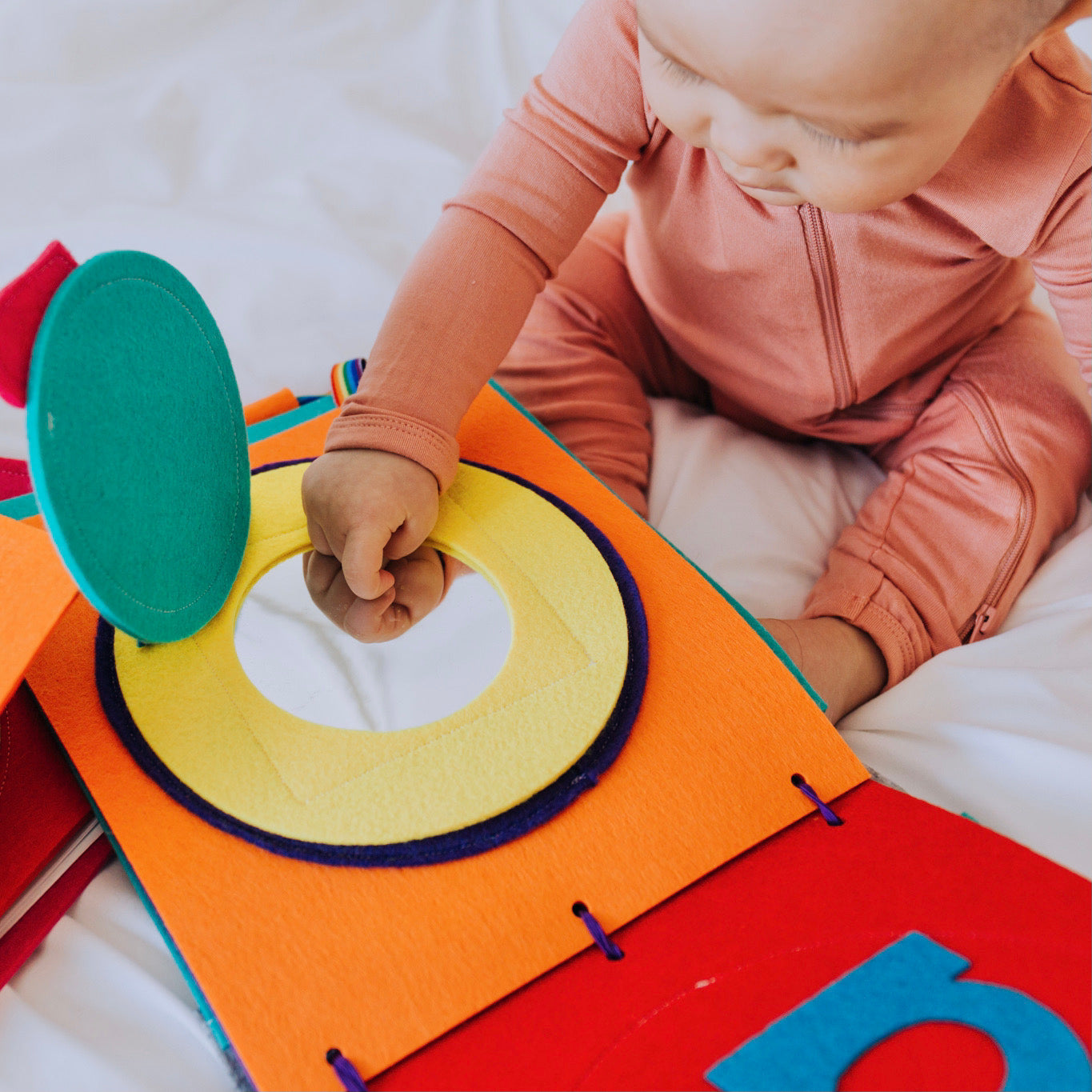 Watch baby's faces light up as they discover all the delightful sensory experiences to discover in this beautifully crafted, felt sensory book for babies.